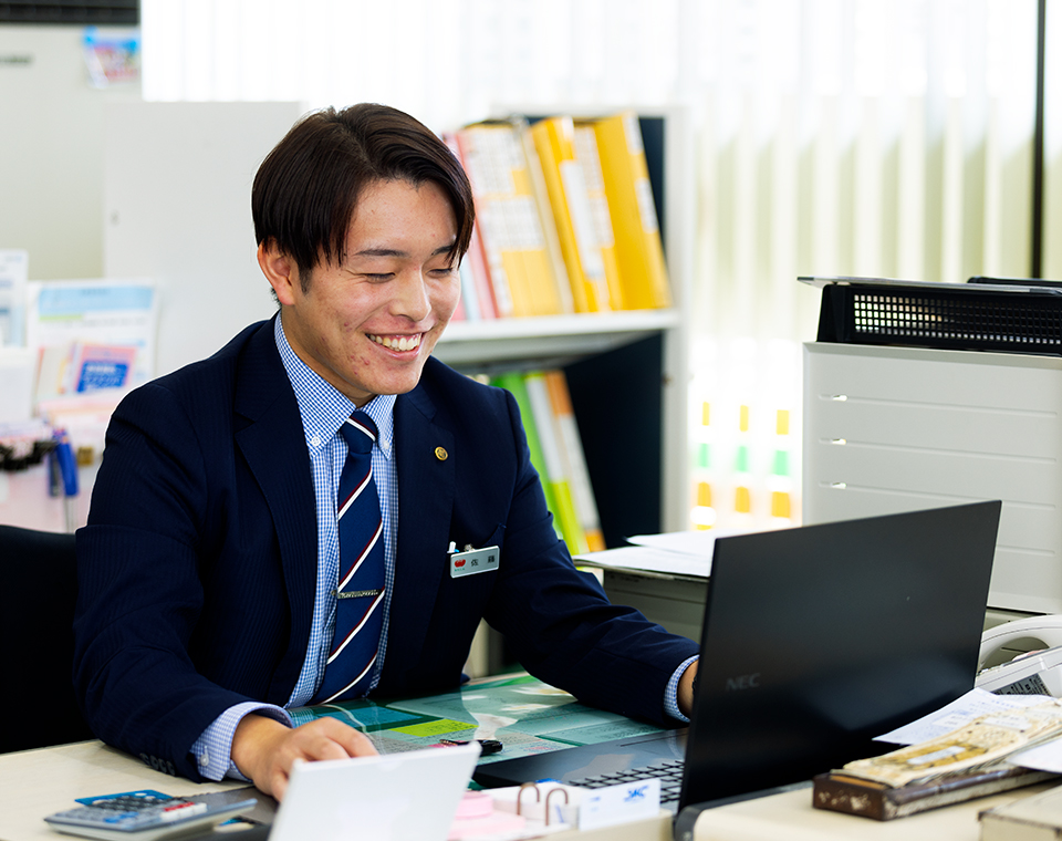 営業担当を務めており、主に法人・個人事業所の定例訪問をはじめ、お客様のニーズを聞き取りし融資に結び付けるために迅速な対応を心掛けています。